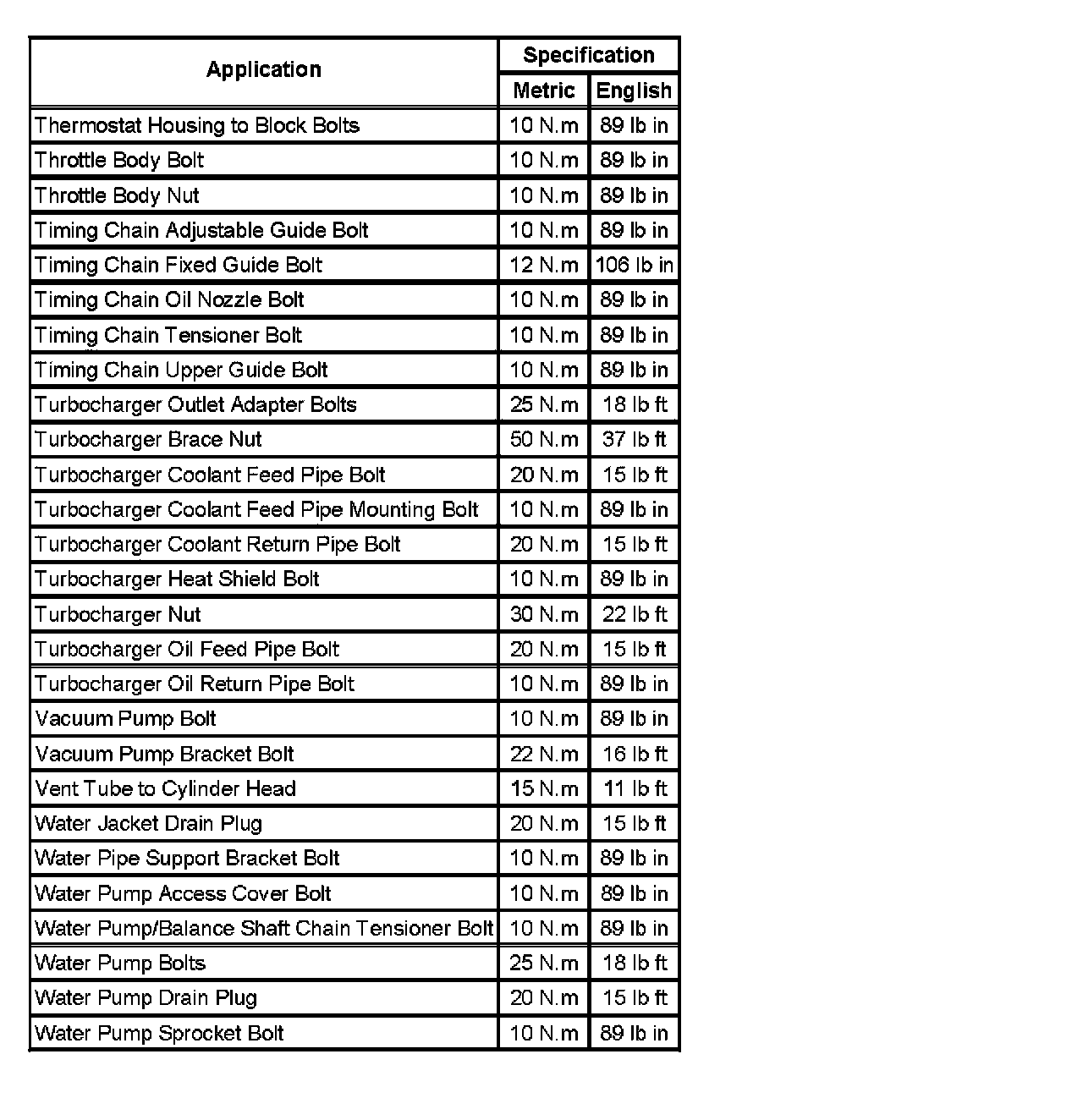 Fastener Tightening Specifications