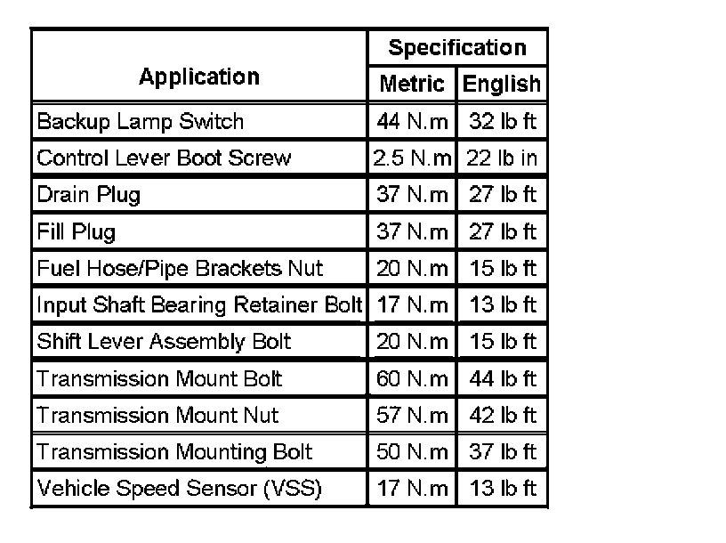 Fastener Tightening Specifications: