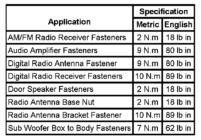 Fastener Tightening Specifications