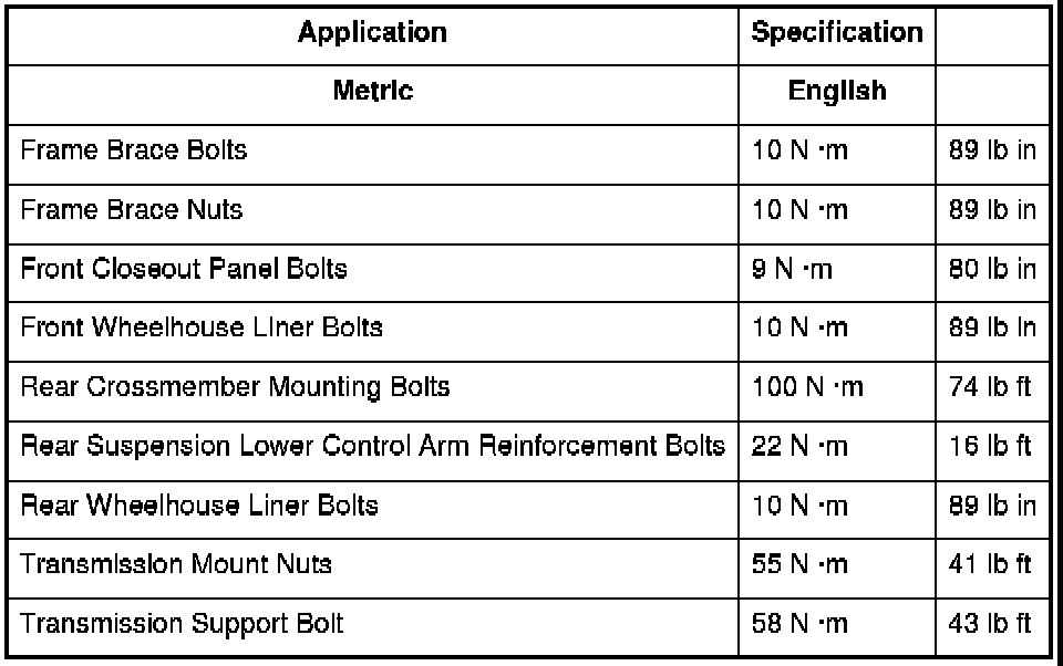 Fastener Tightening Specifications