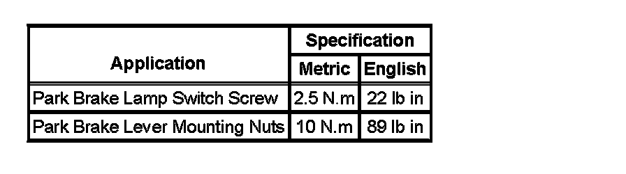Parking Brake System: Specifications