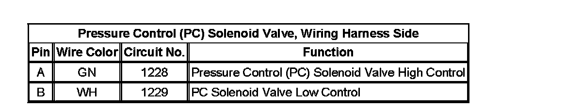 Pressure Control (PC) Solenoid Valve, Wiring Harness Side: