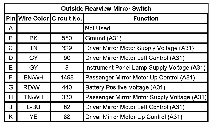 Outside Rearview Mirror Switch