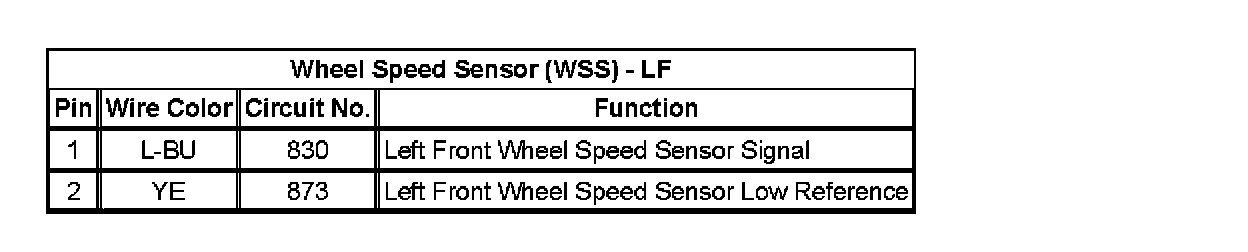 Wheel Speed Sensor (WSS) - LF: