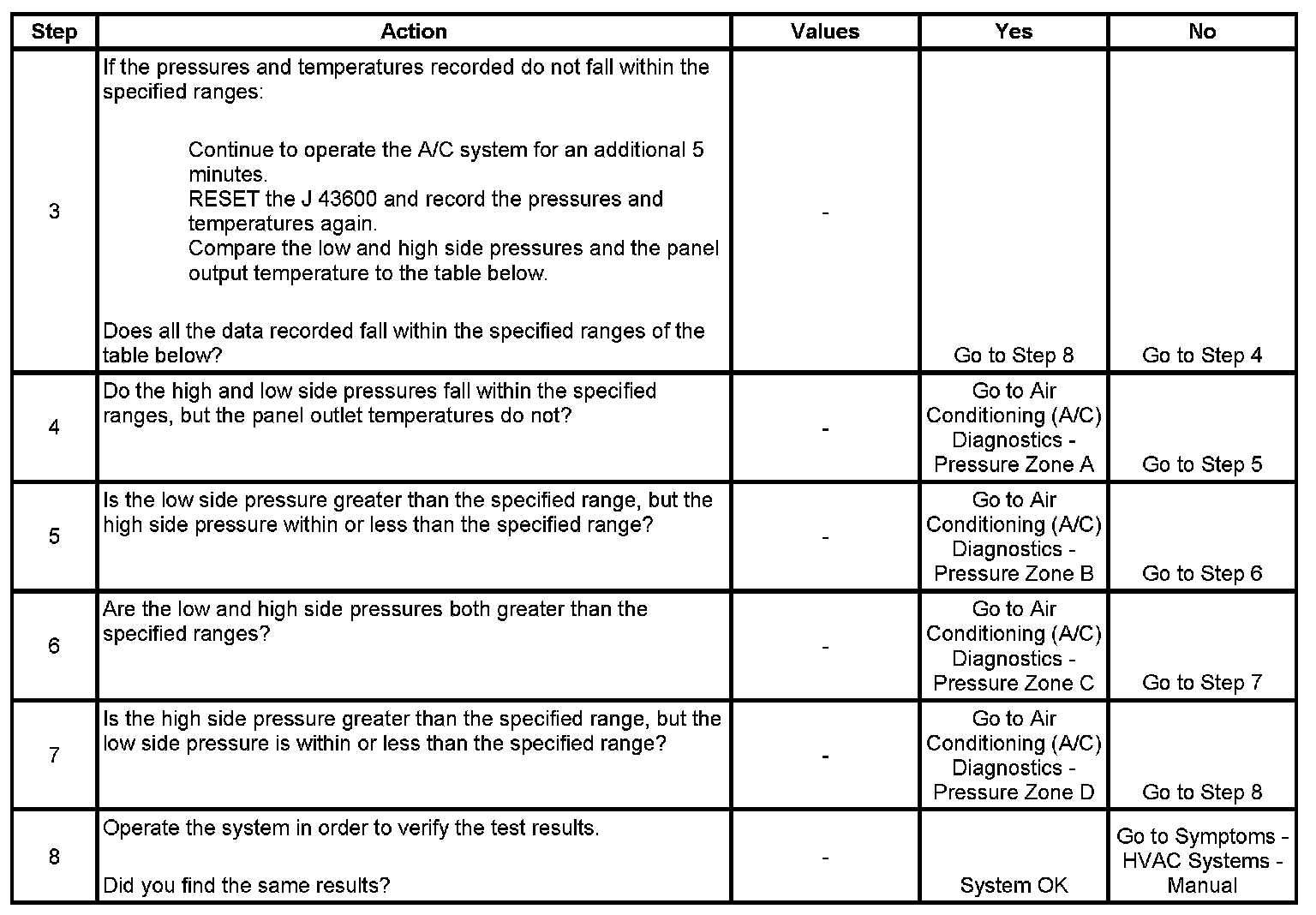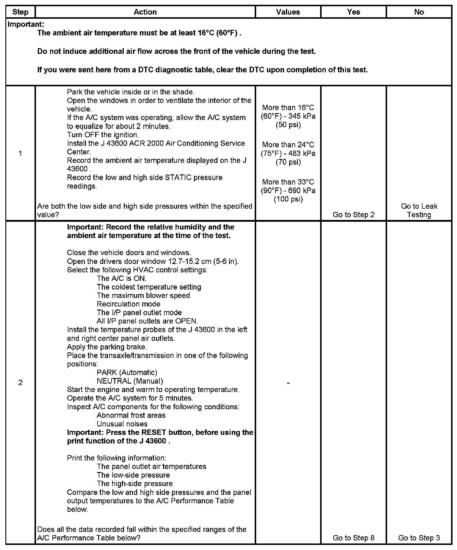 1. This step determines if the A/C system has at least the minimum refrigerant charge required to operate the system without damage.