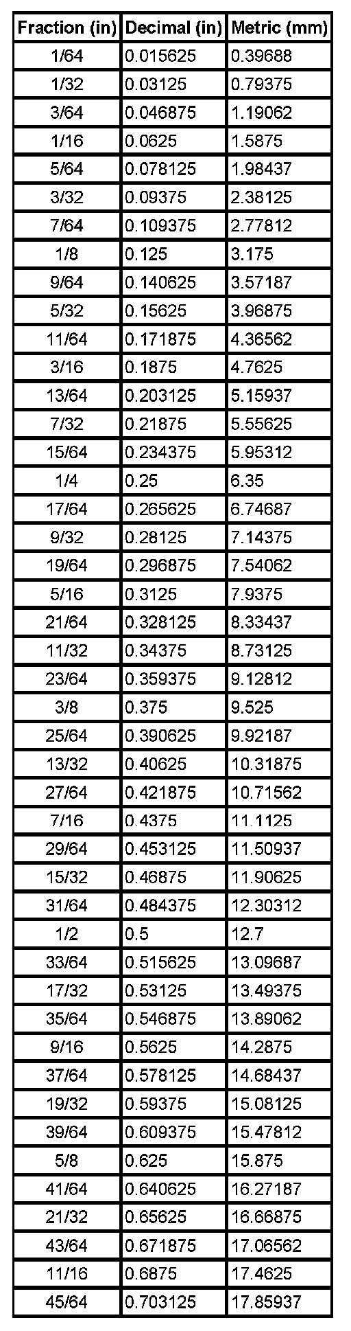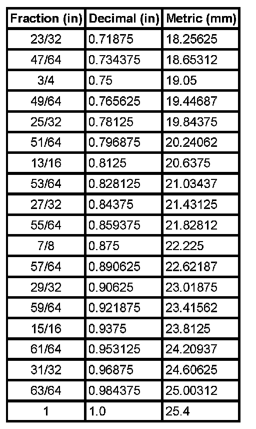 Decimal and Metric Equivalents