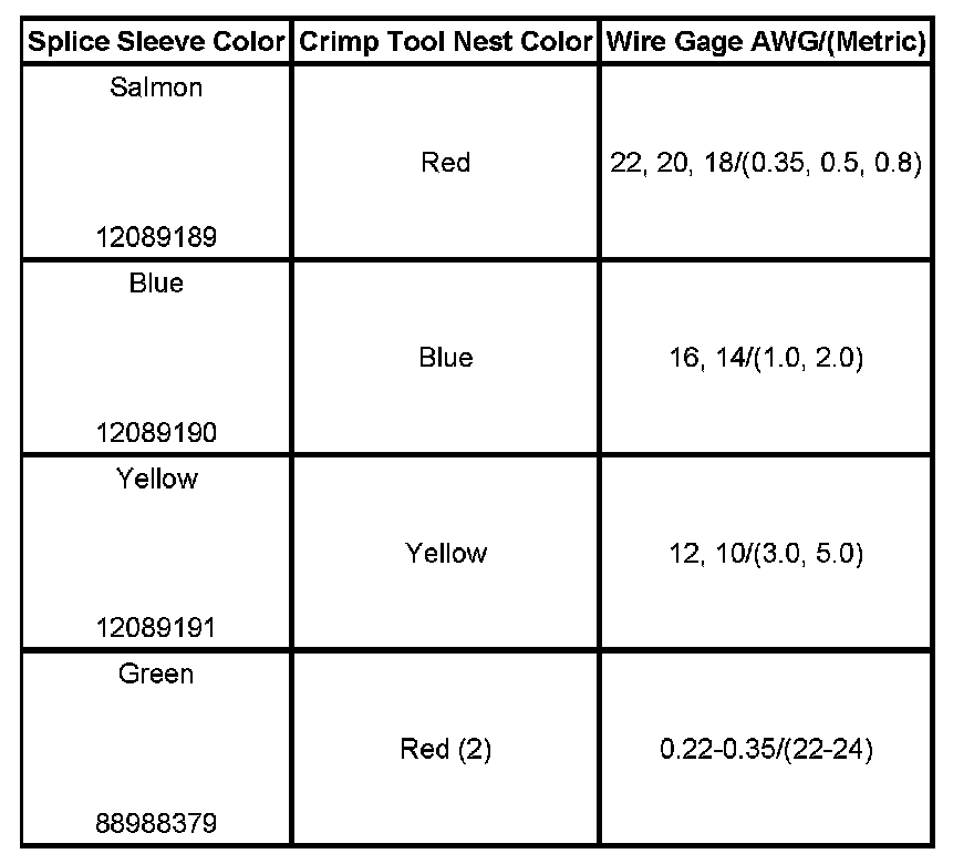 5. Select the proper DuraSeal splice sleeve according to the wire size. Refer to the table provided.