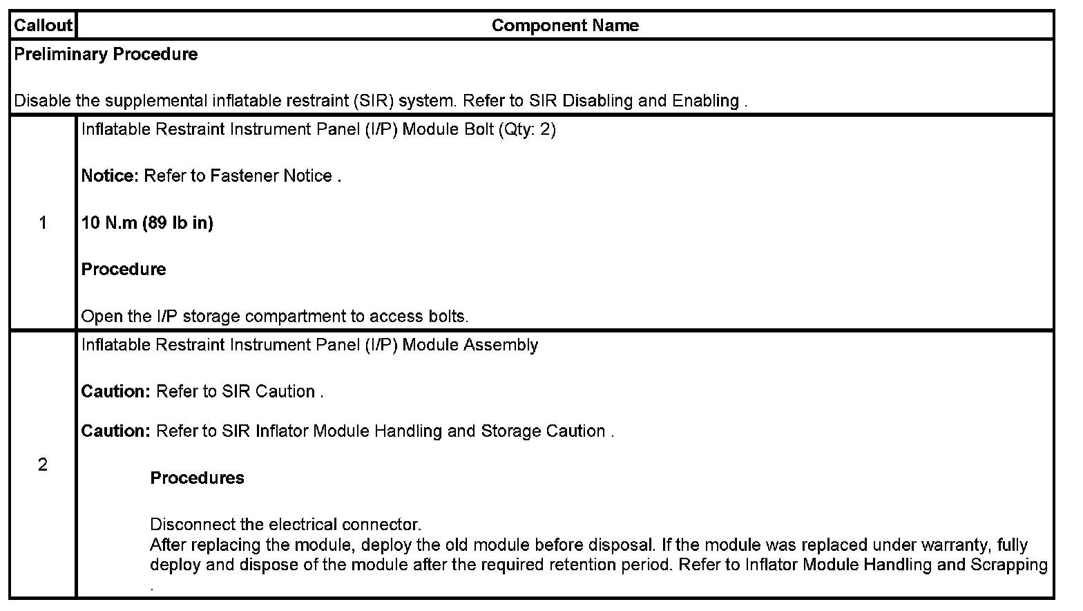 Inflatable Restraint Instrument Panel Module Replacement