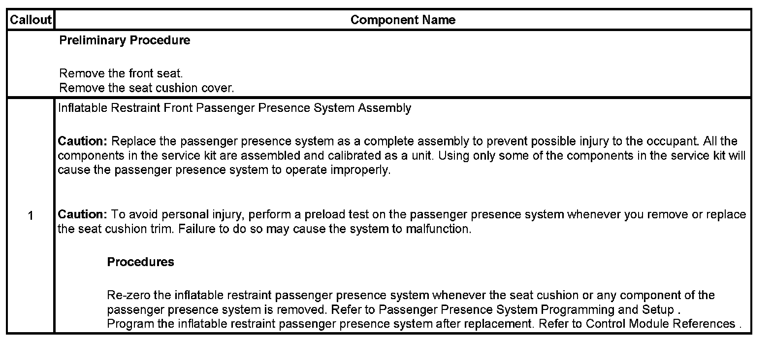 Inflatable Restraint Passenger Presence System Replacement - Front