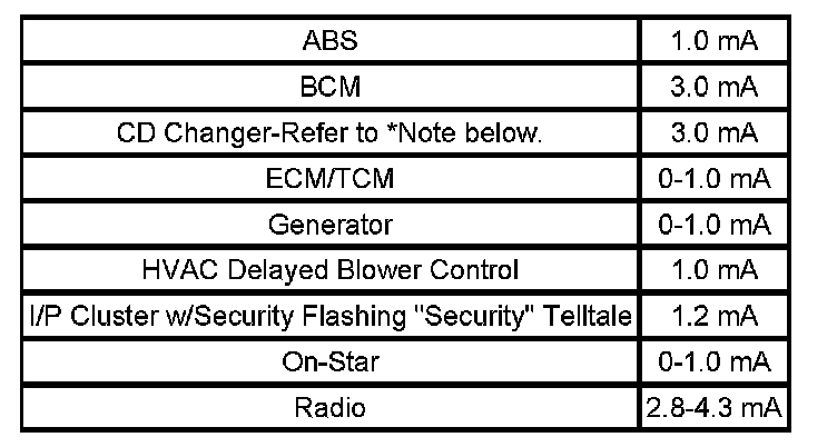 Important: During CD changer initialization, parasitic current draw will fluctuate between 3 mA to 1 A. The initialization period lasts up to a maximum of 90 seconds. After initialization, the CD changer parasitic current draw will stabilize at approximately 3 mA.