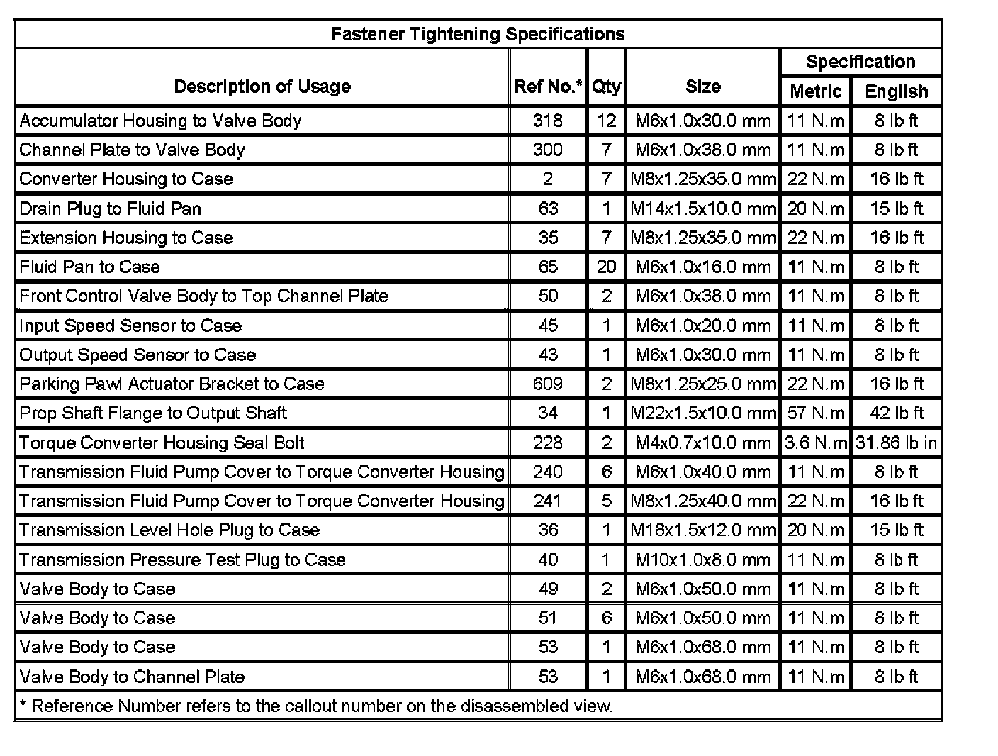 Fastener Tightening Specifications: