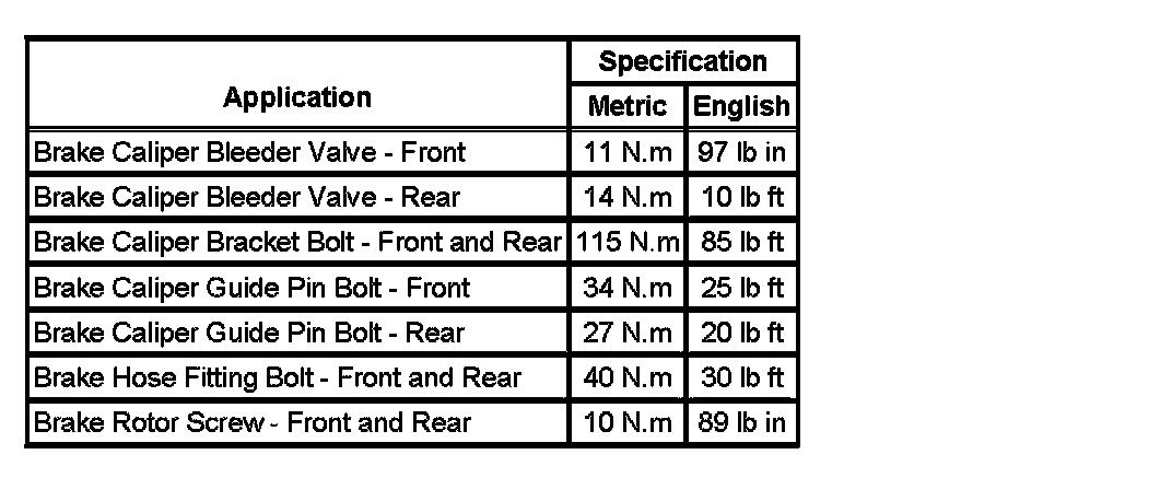 Fastener Tightening Specifications: