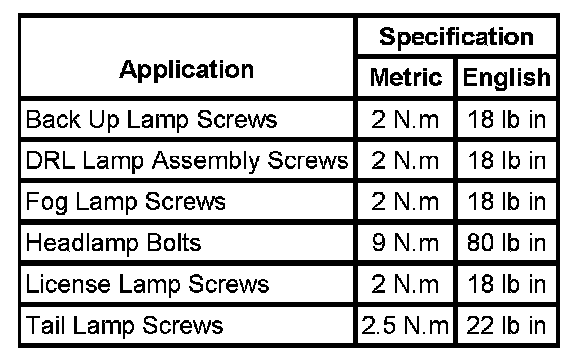 Fastener Tightening Specifications