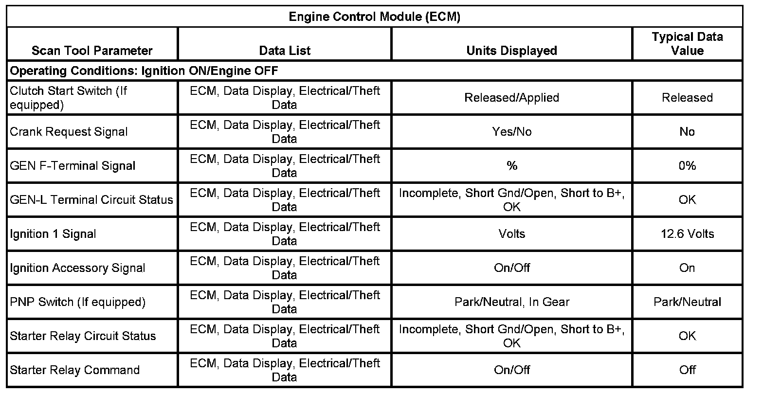 Scan Tool Data List