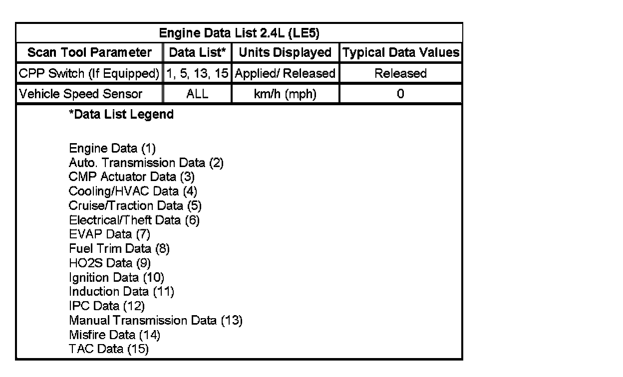 Only the parameters listed below are used in this manual for diagnosing. If a scan tool displays other parameters, the values are not recommended by General Motors for use in diagnosis.