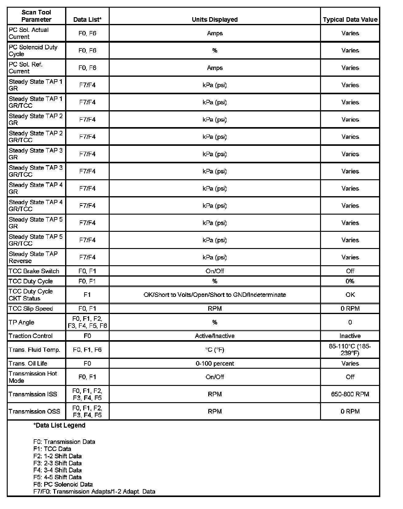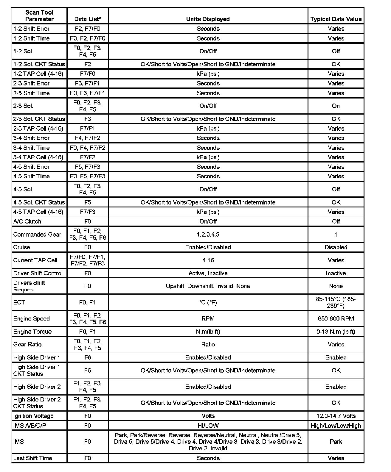 Only the parameters listed below are used in this service data for diagnosing. If a scan tool displays other parameters, the values are not recommended by General Motors for use in diagnosis.