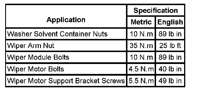 Wiper and Washer Systems: Specifications