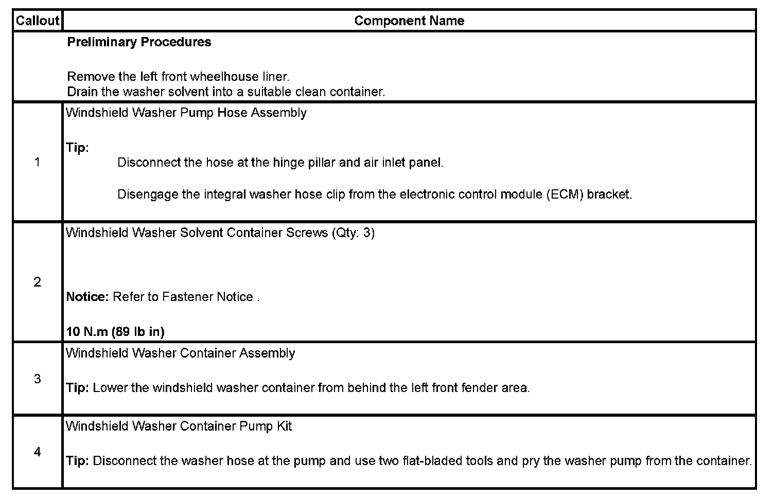 Washer Solvent Container Replacement