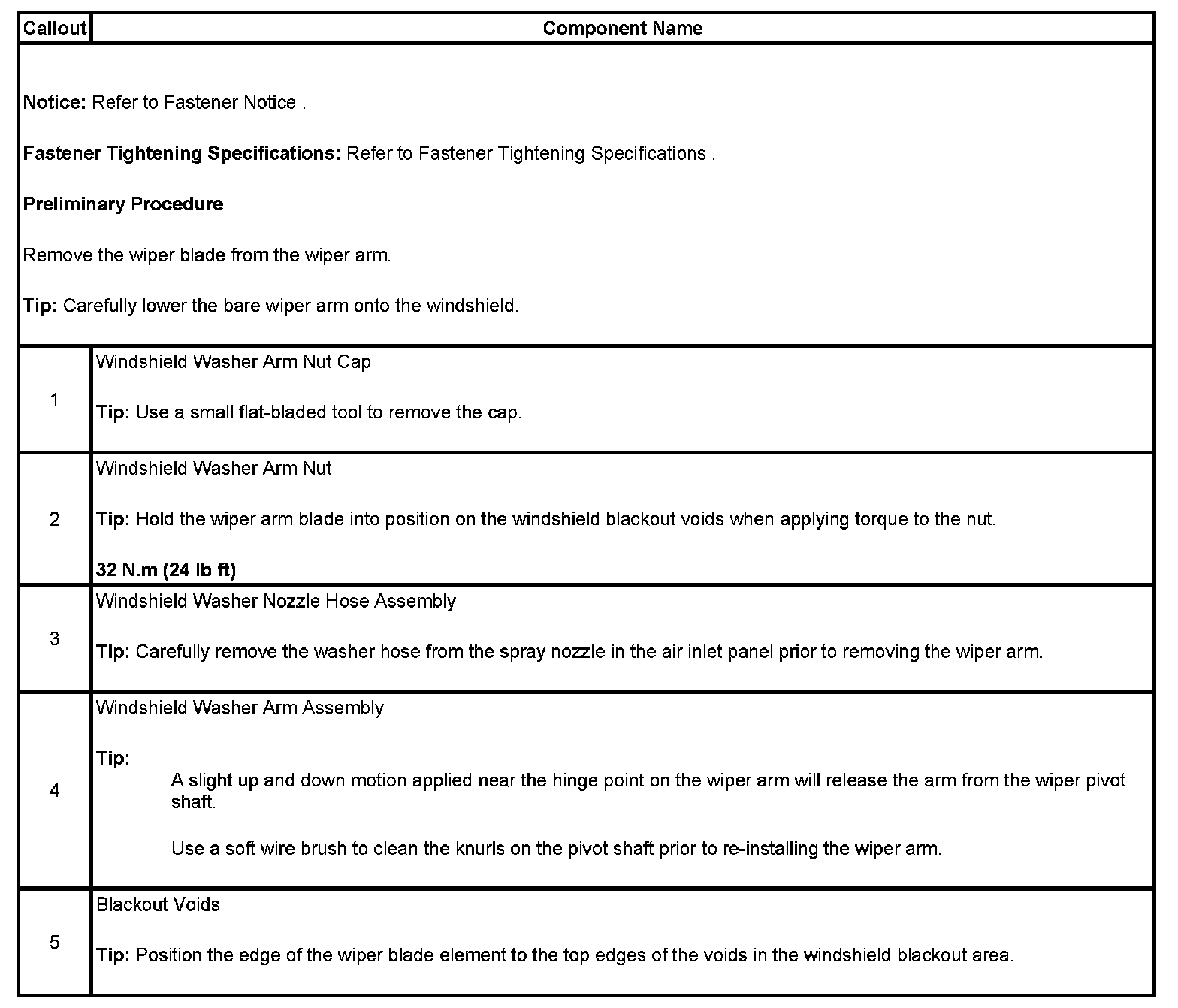 Wiper Arm: Service and Repair