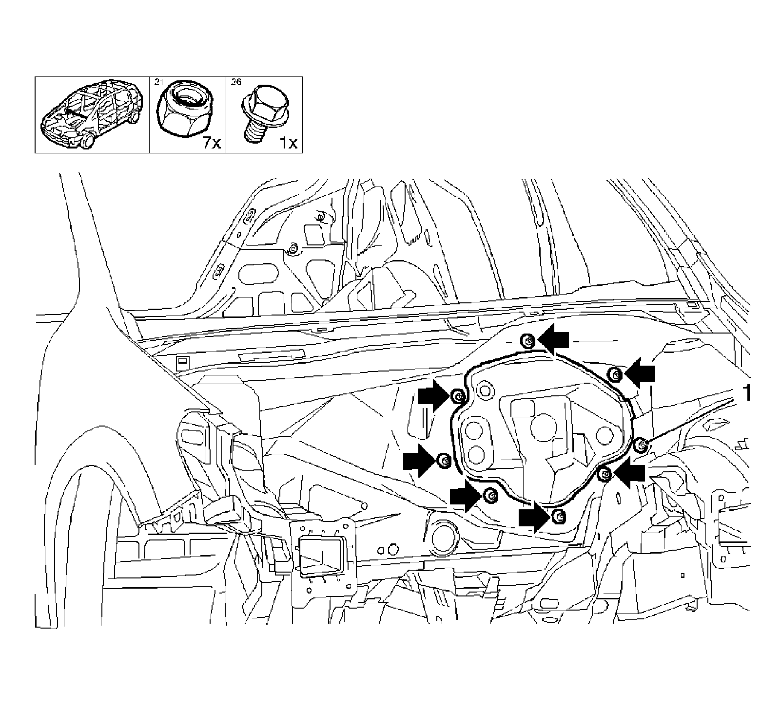 * Tighten the 7 nuts to 20 N.m (15 lb ft).