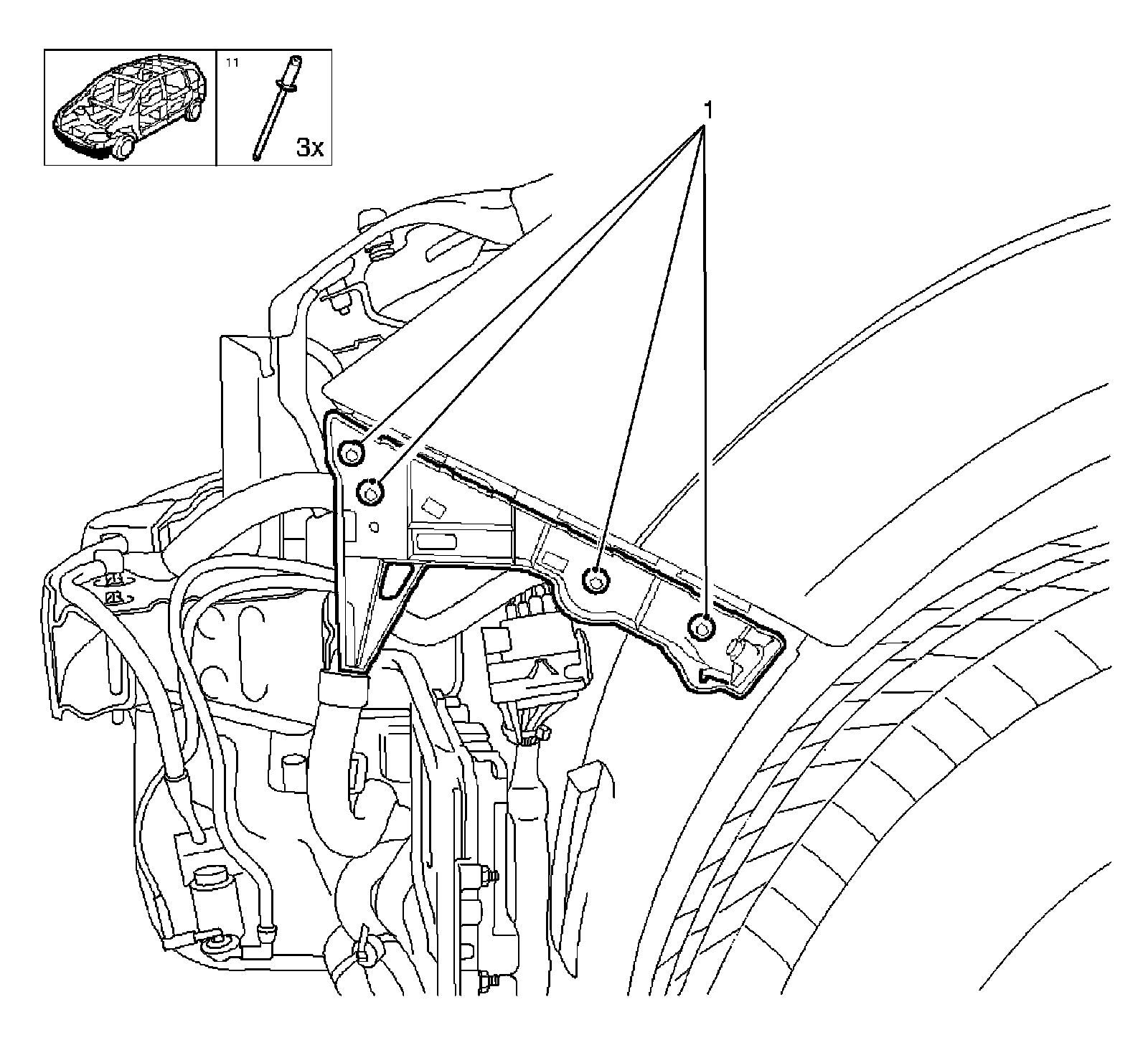 * Remove the bracket (2) from fender.