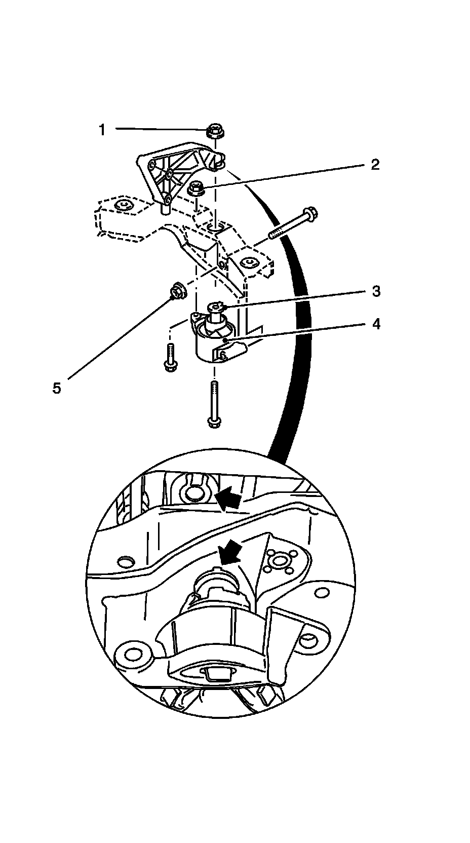 5. Detach the rear engine damping block (5) from front frame.