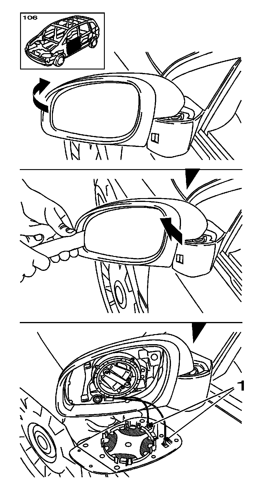 4. Carefully pry out the mirror glass with a plastic wedge.