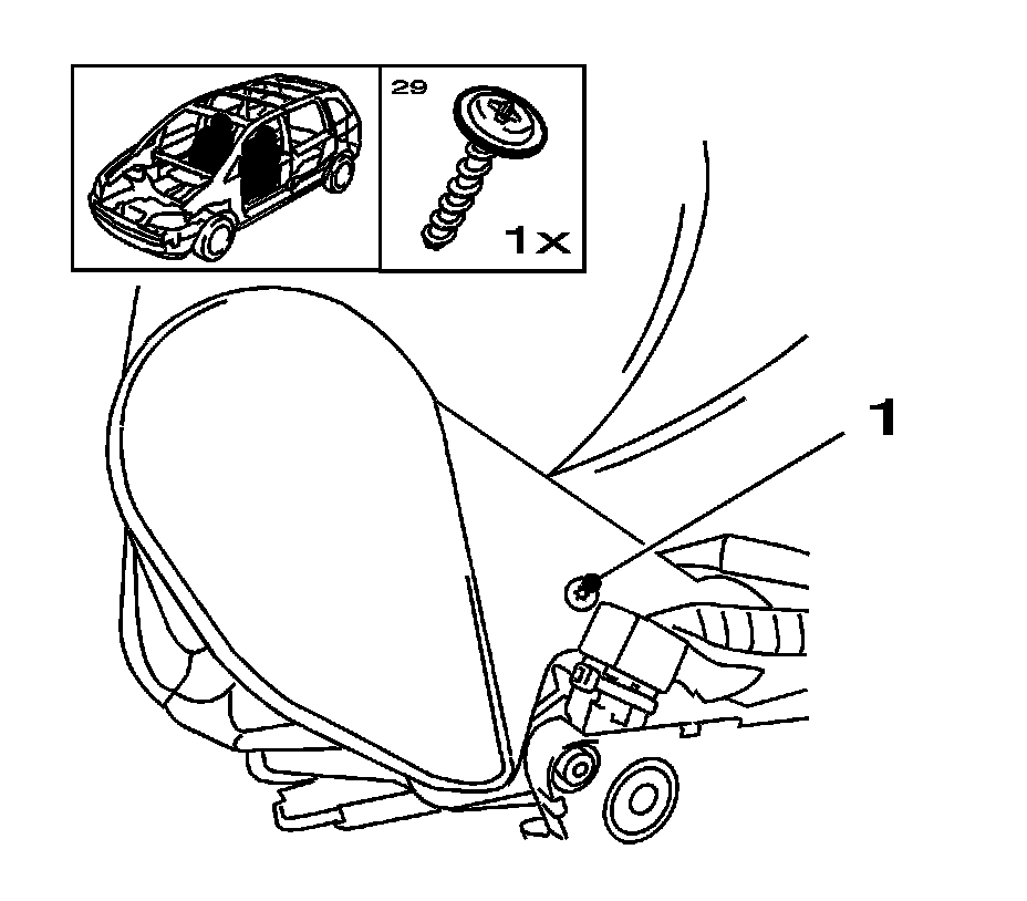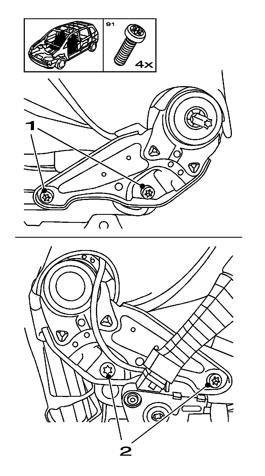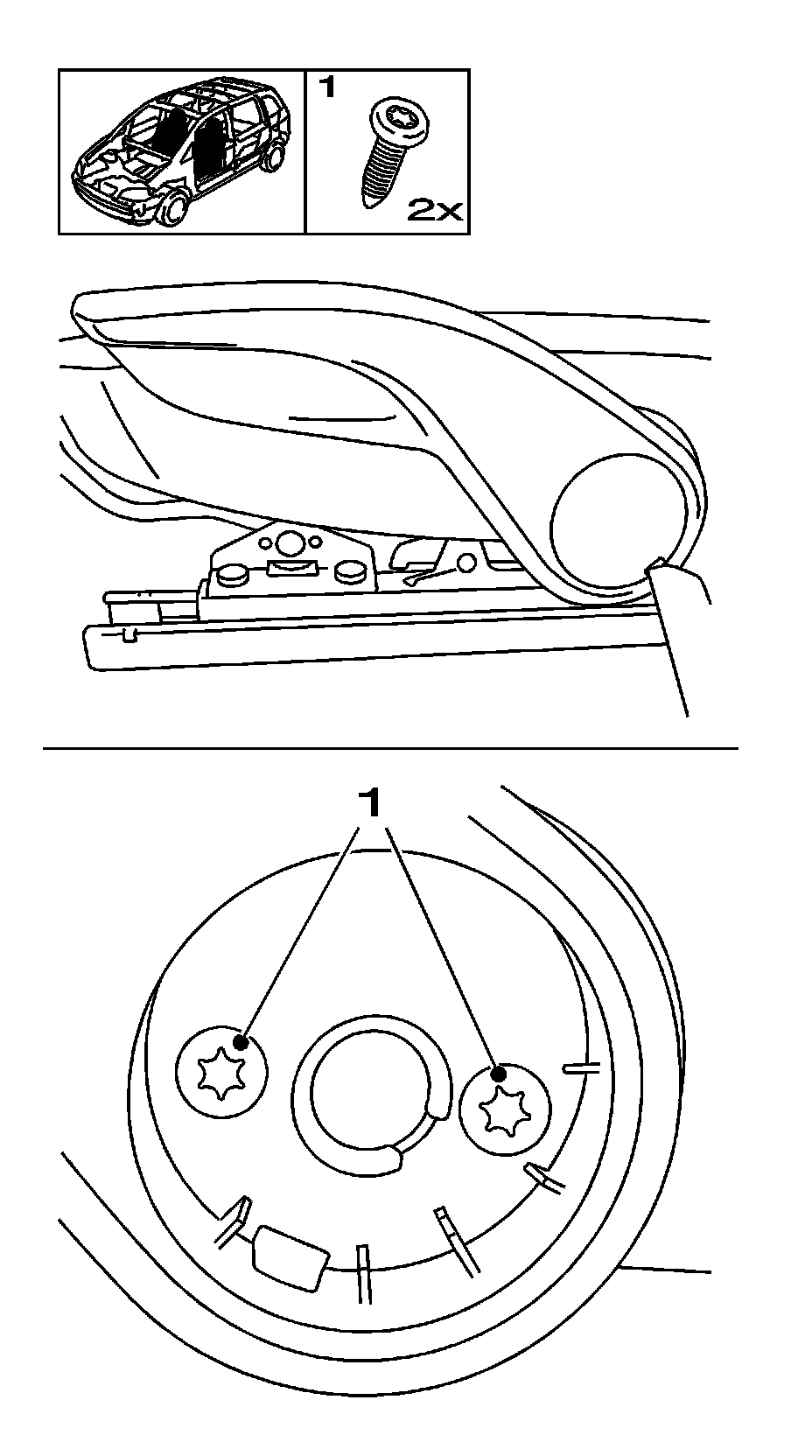 17. Remove the bolt (1) and remove belt buckle tensioner from the bracket.