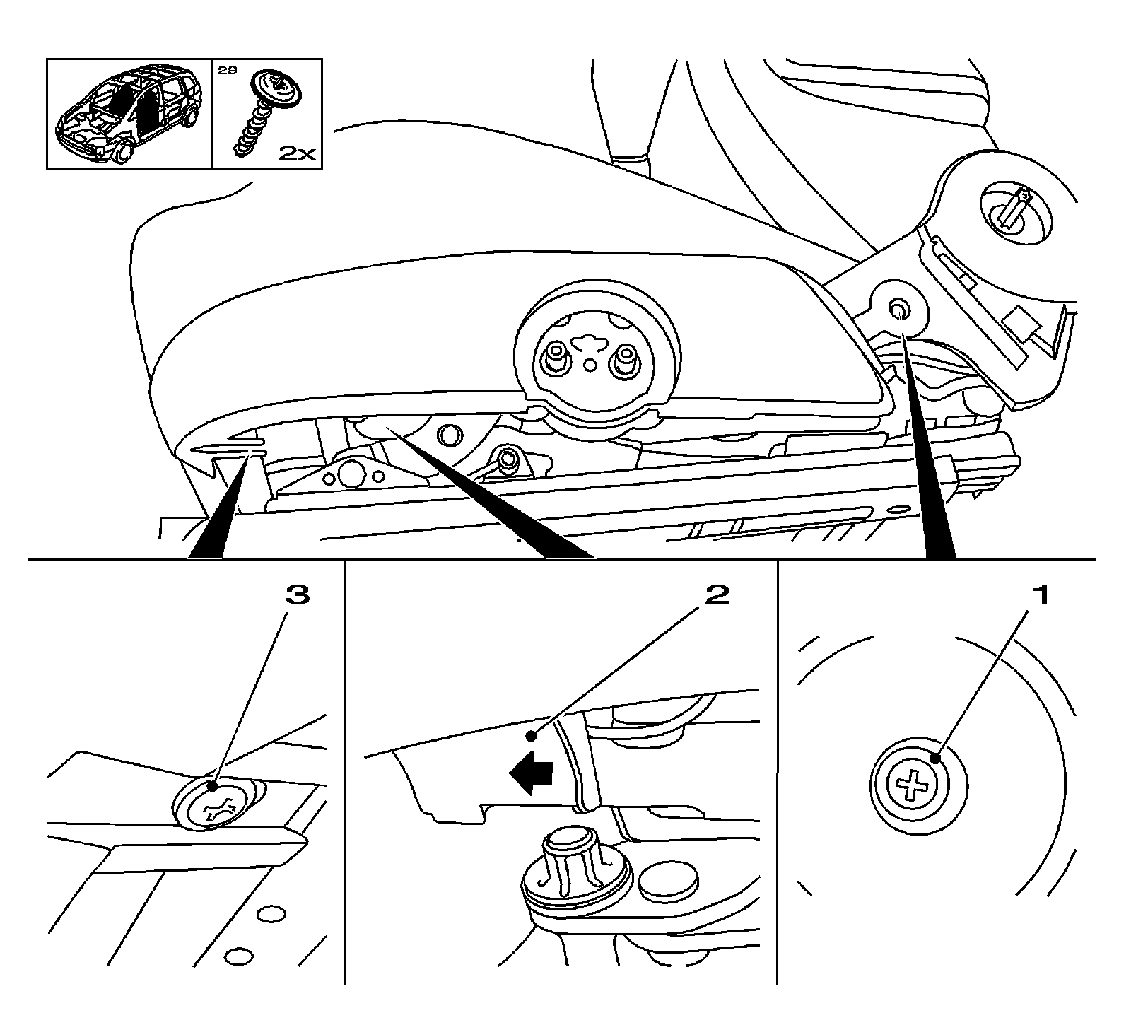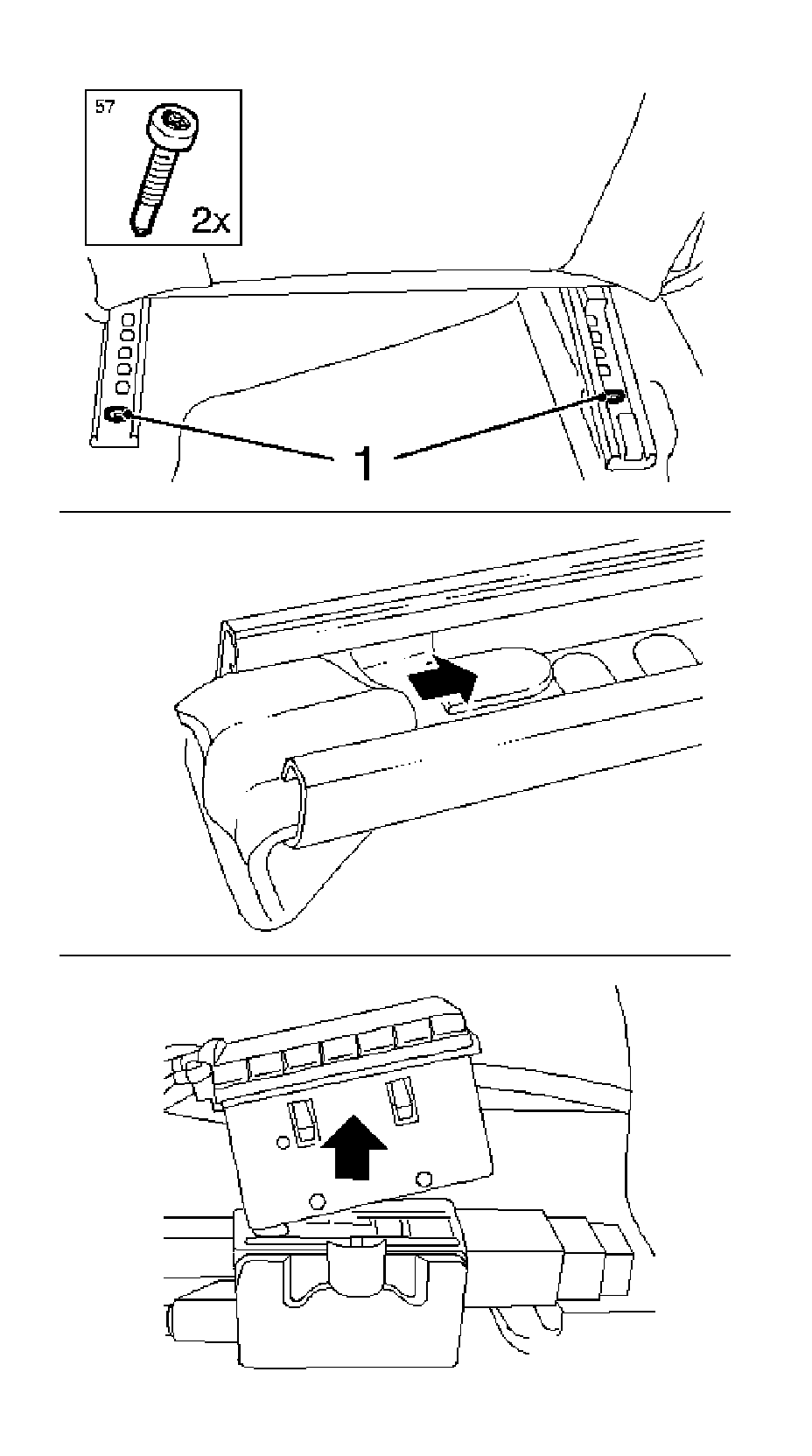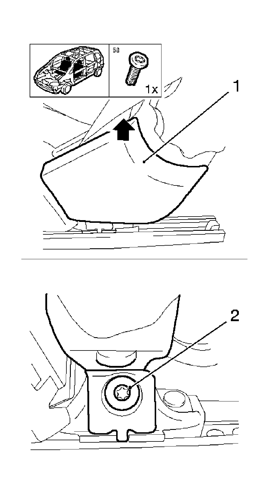 17. Remove the bolt (1) and remove belt buckle tensioner from the bracket.