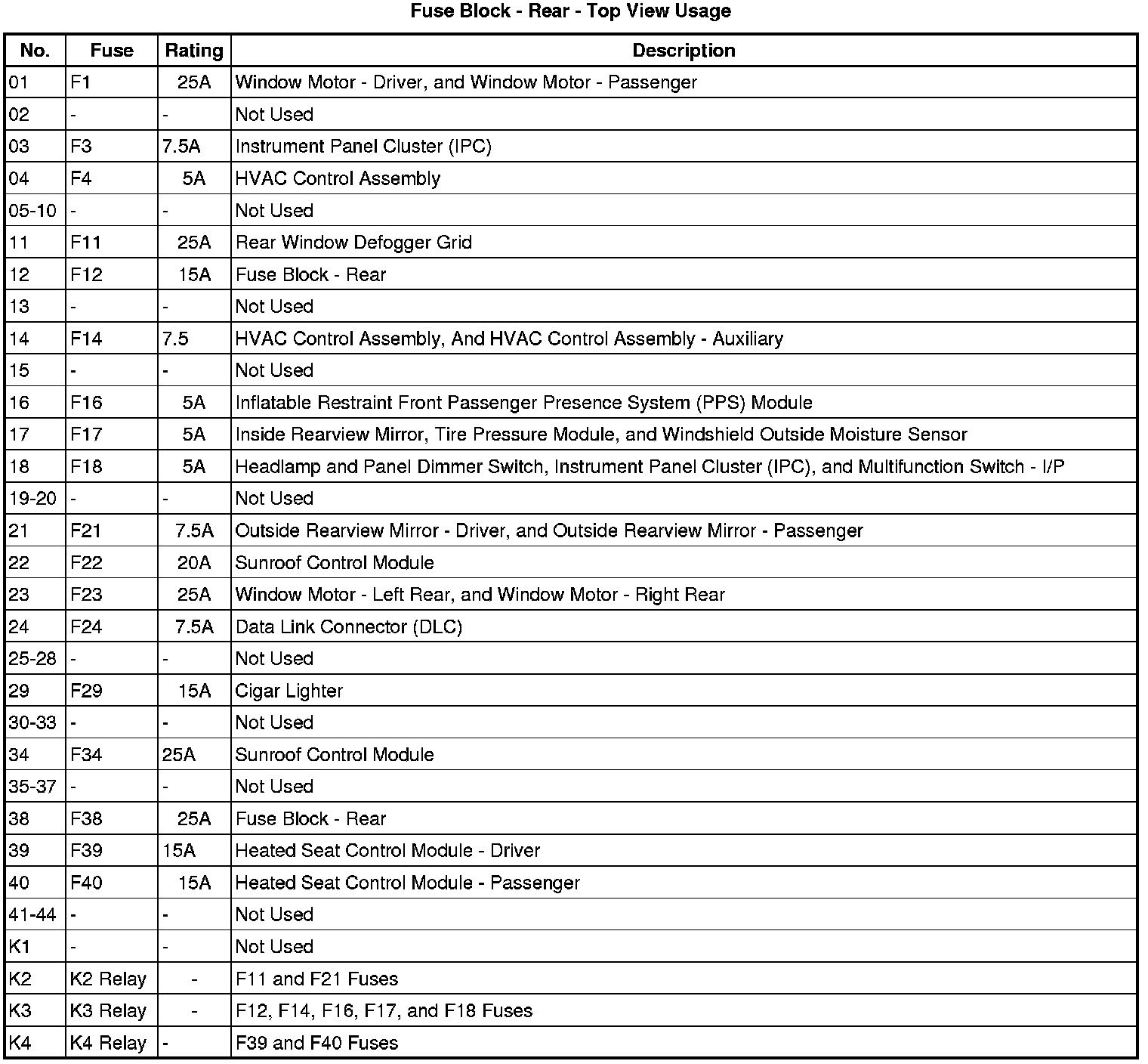 Fuse Block - Rear - Top View
