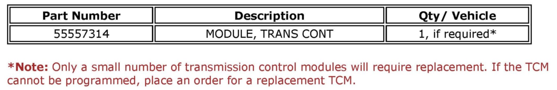 U.S. Retailers: Parts required to complete this field action are to be obtained from Saturn Service Parts Operations (SSPO). Due to the small number of anticipated transmission control module (TCM) replacements, Saturn did not pre-ship parts for this recall. If the TCM cannot be programmed, please place an order for a replacement part.