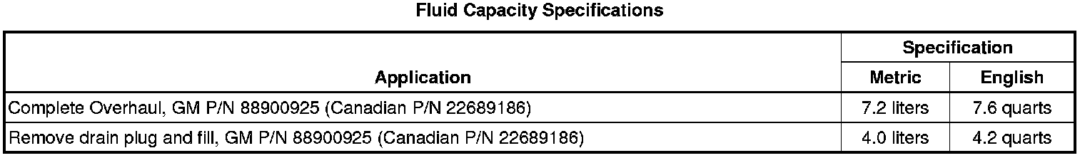 Fluid Capacity Specifications