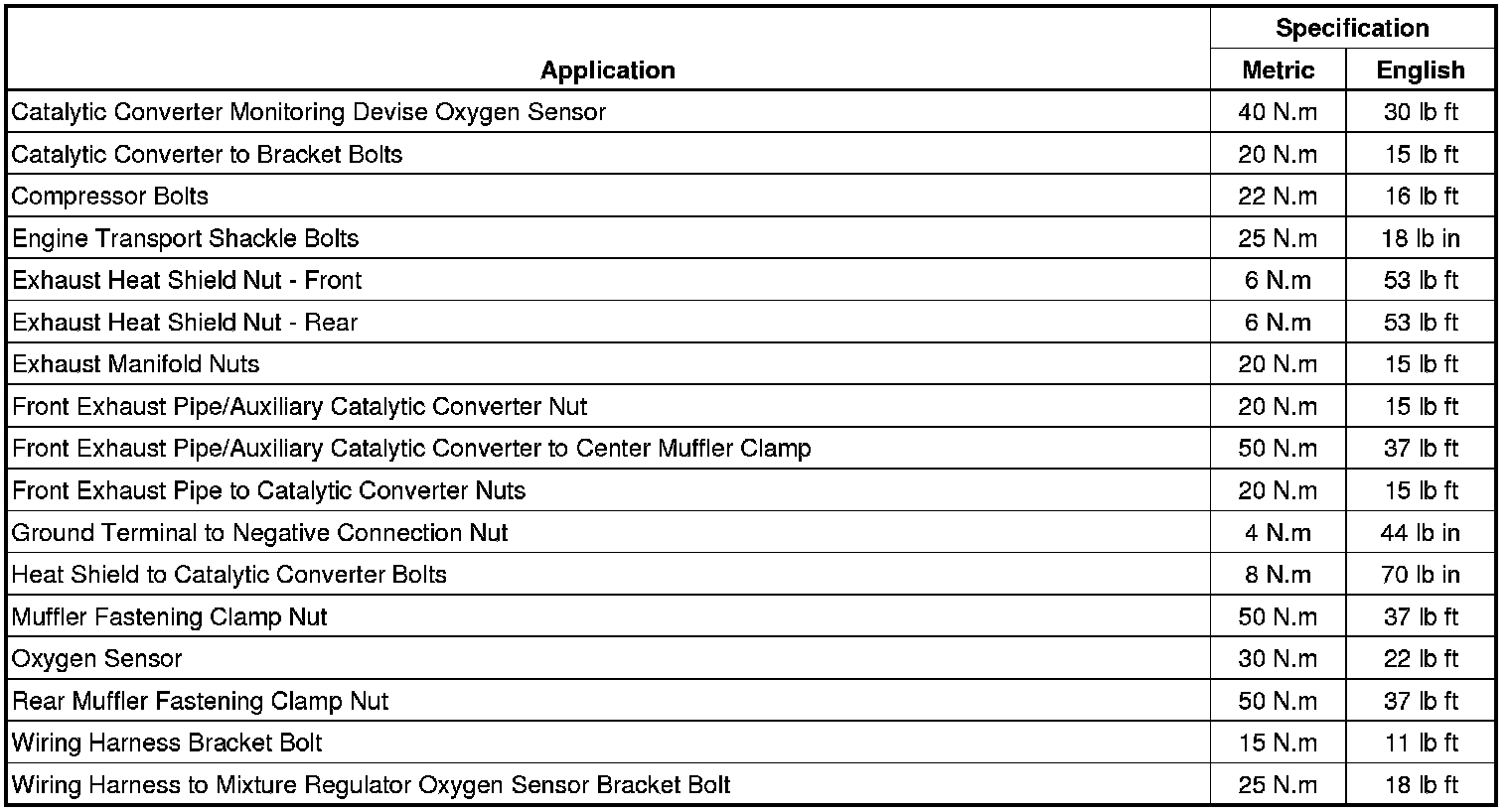 Fastener Tightening Specifications