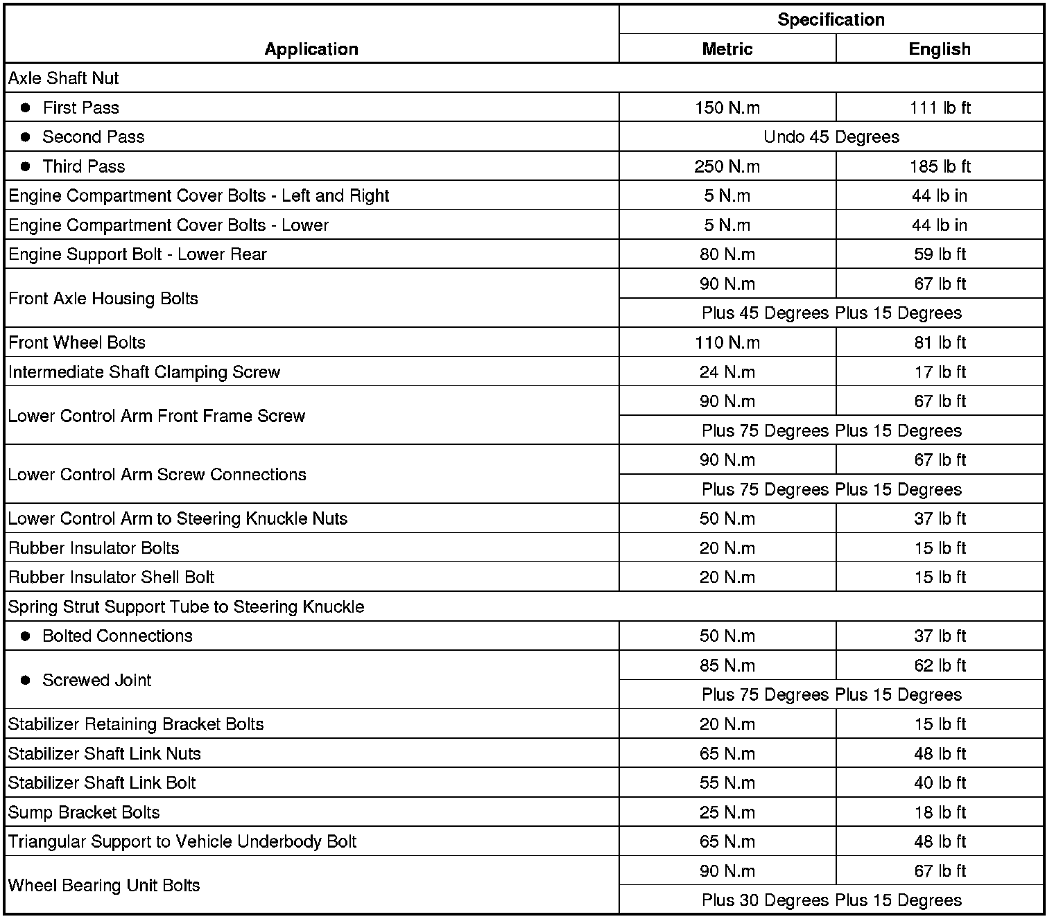 Fastener Tightening Specifications
