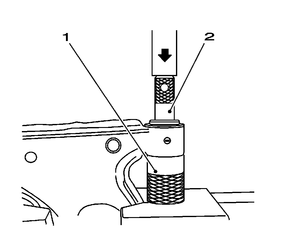 2. Press the front damping bushing out with KM-508-A KM-508-A-1 (1) and (2).