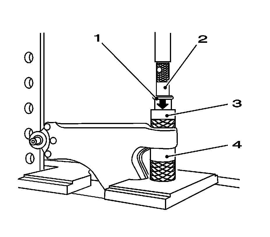 2. Press in the front damping bushing with KM-508-A (3), KM-508-A (2) and KM-508-A (4).