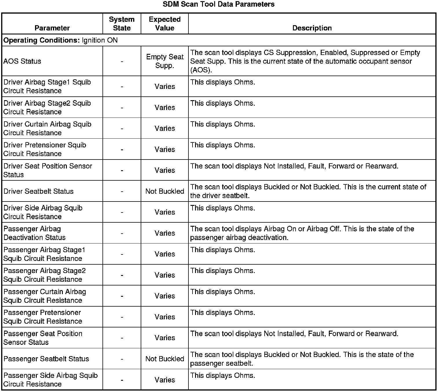 Inflatable Restraint Sensing and Diagnostic Module Scan Tool Information