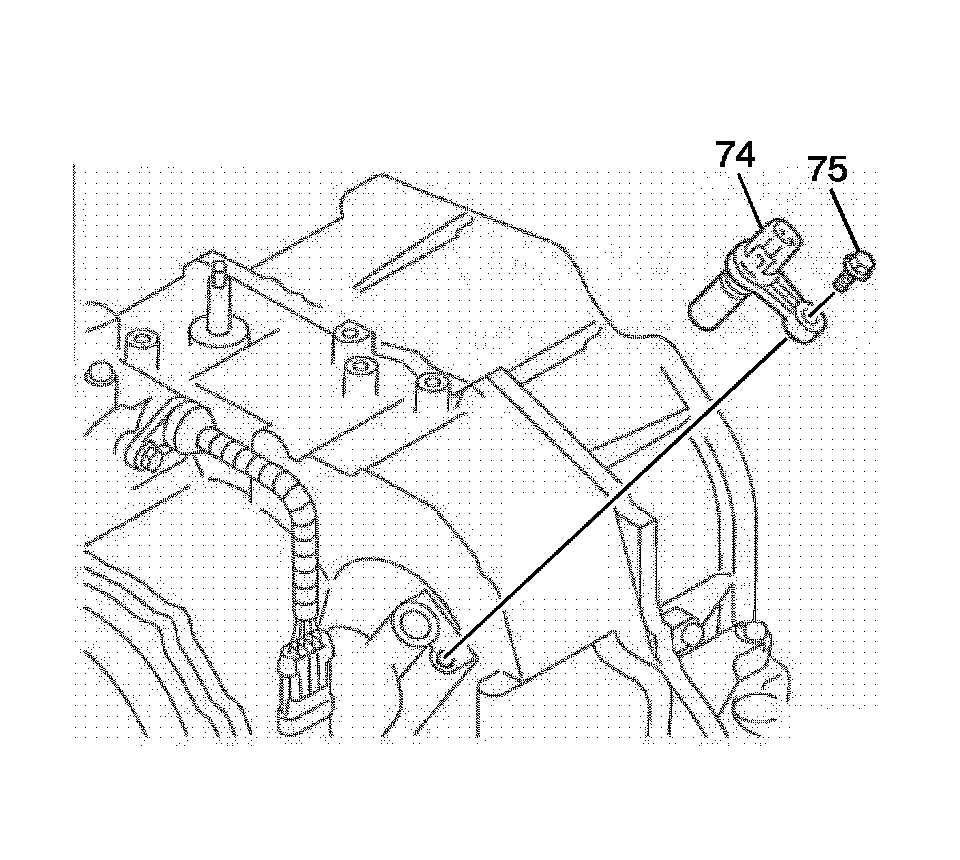 3. Remove the retaining bolt (75) and the sensor (74).