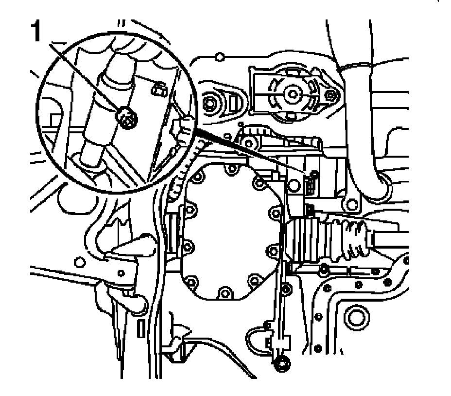 * Engage the locking pin (1) in the adjusting bore in the transmission cover (arrow).