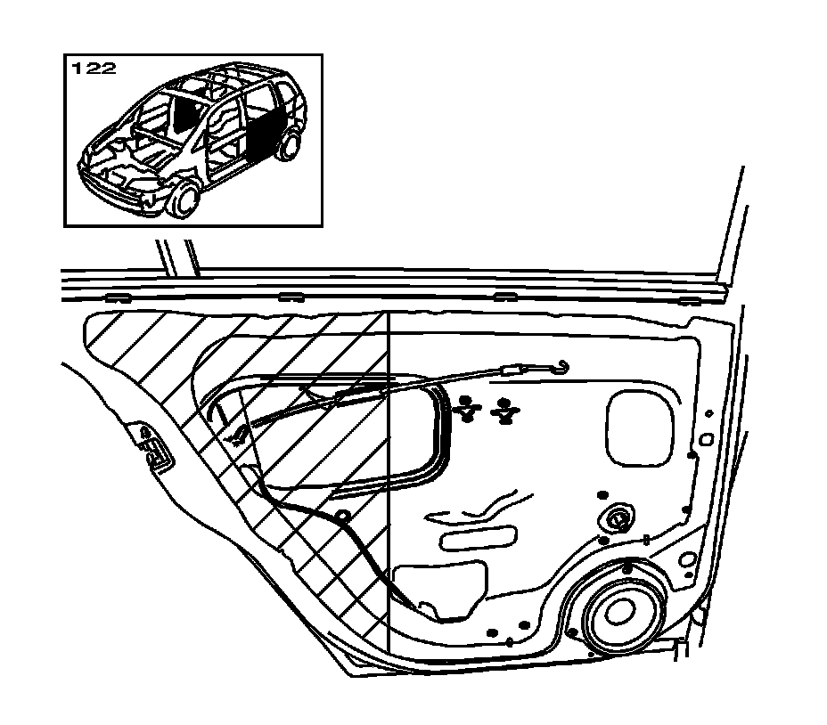 2. Remove the rear side door trim panel. Refer to Rear Side Door Trim Panel Replacement (Service and Repair) .
