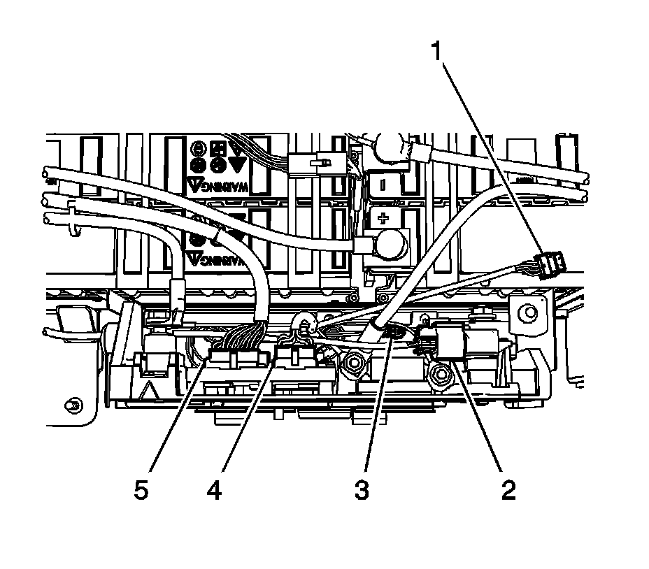 6. Connect the generator battery temperature sensor wiring harness electrical connectors (2, 5) to the generator control module.