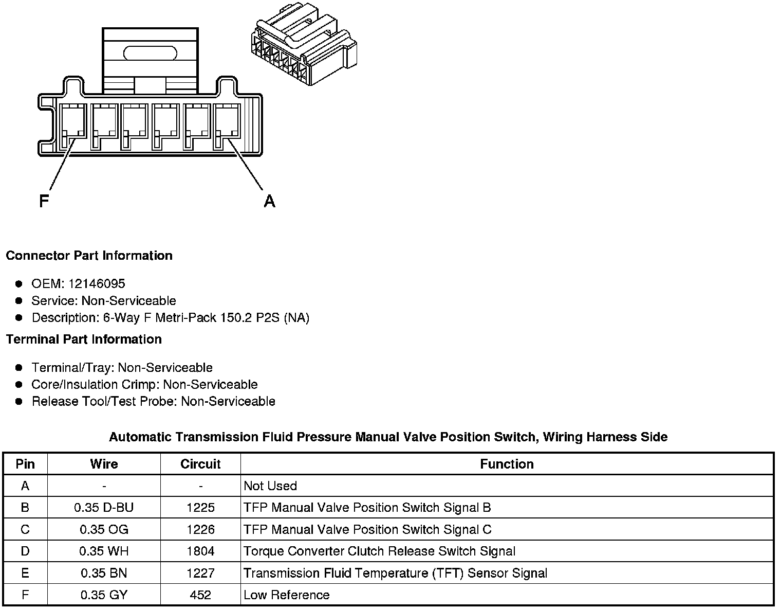 Automatic Transmission Fluid Pressure Manual Valve Position Switch, Wiring Harness Side