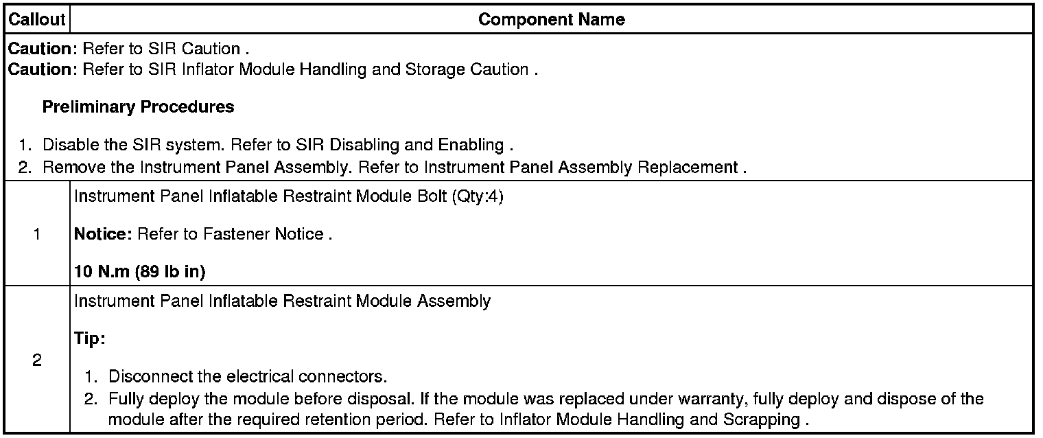 Inflatable Restraint Instrument Panel Module Replacement