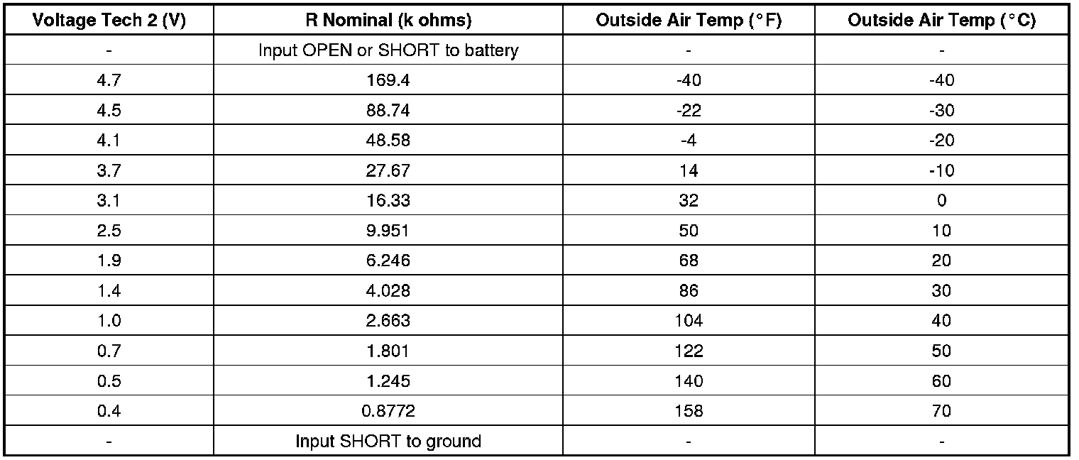 Sensor Resistance Table (Ambient Air Temp Sensor)