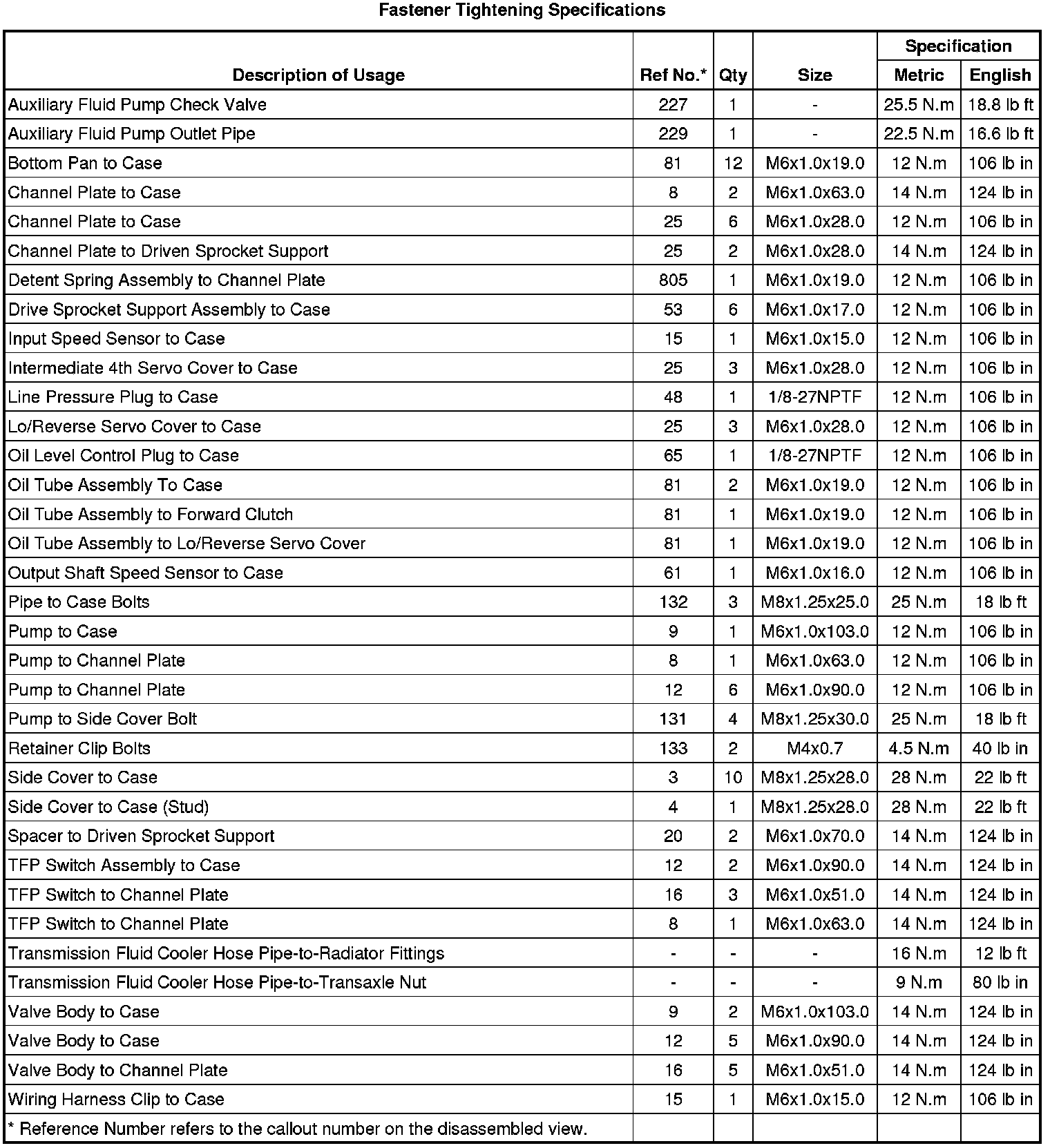 Fastener Tightening Specifications