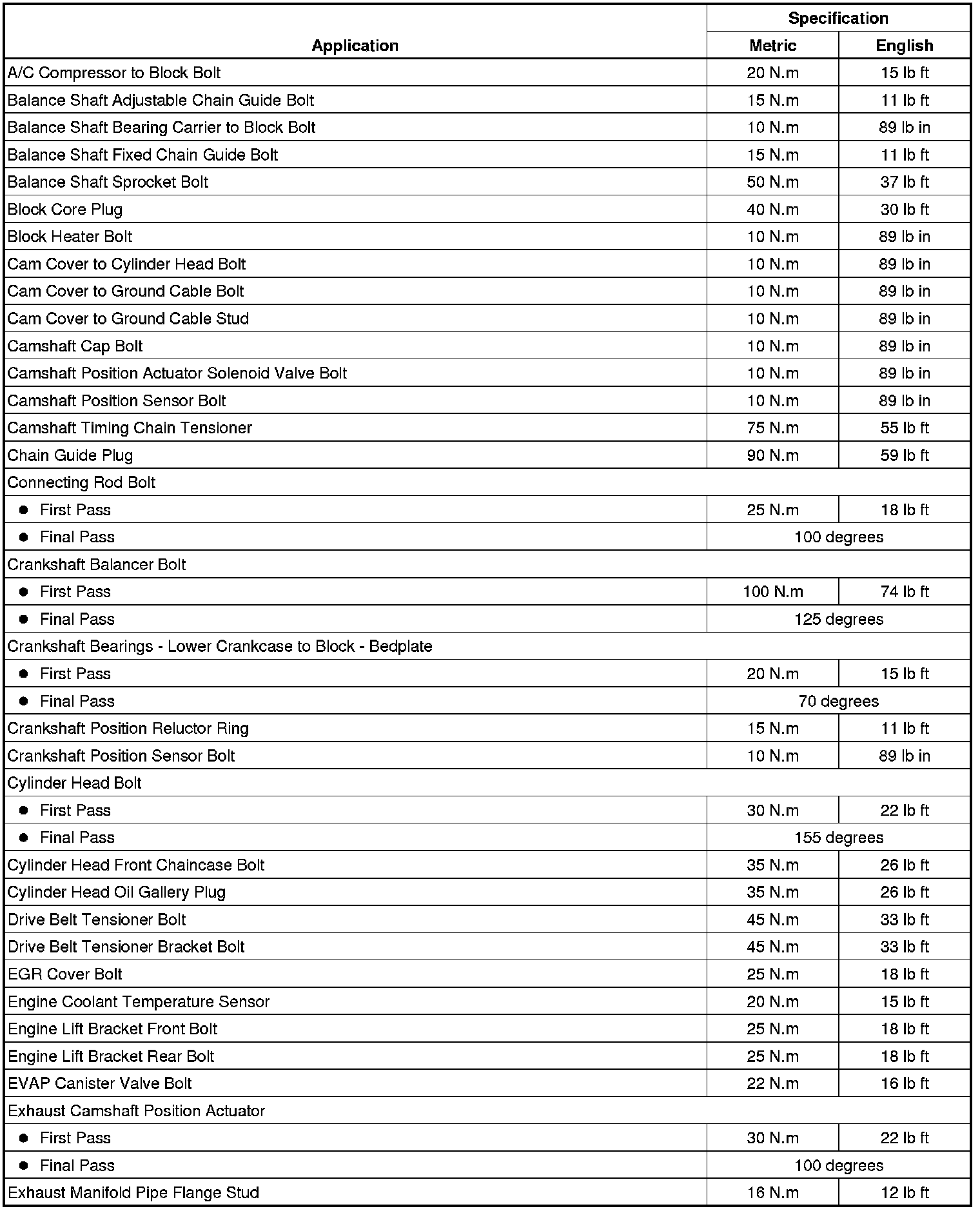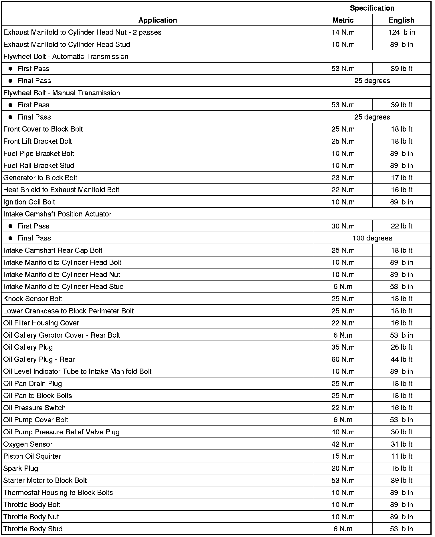 Fastener Tightening Specifications