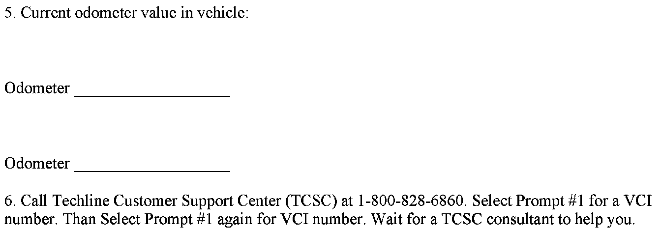 2. Complete odometer worksheet and have it ready when calling the Customer Support Center (TCSC). Refer to the work sheet shown.