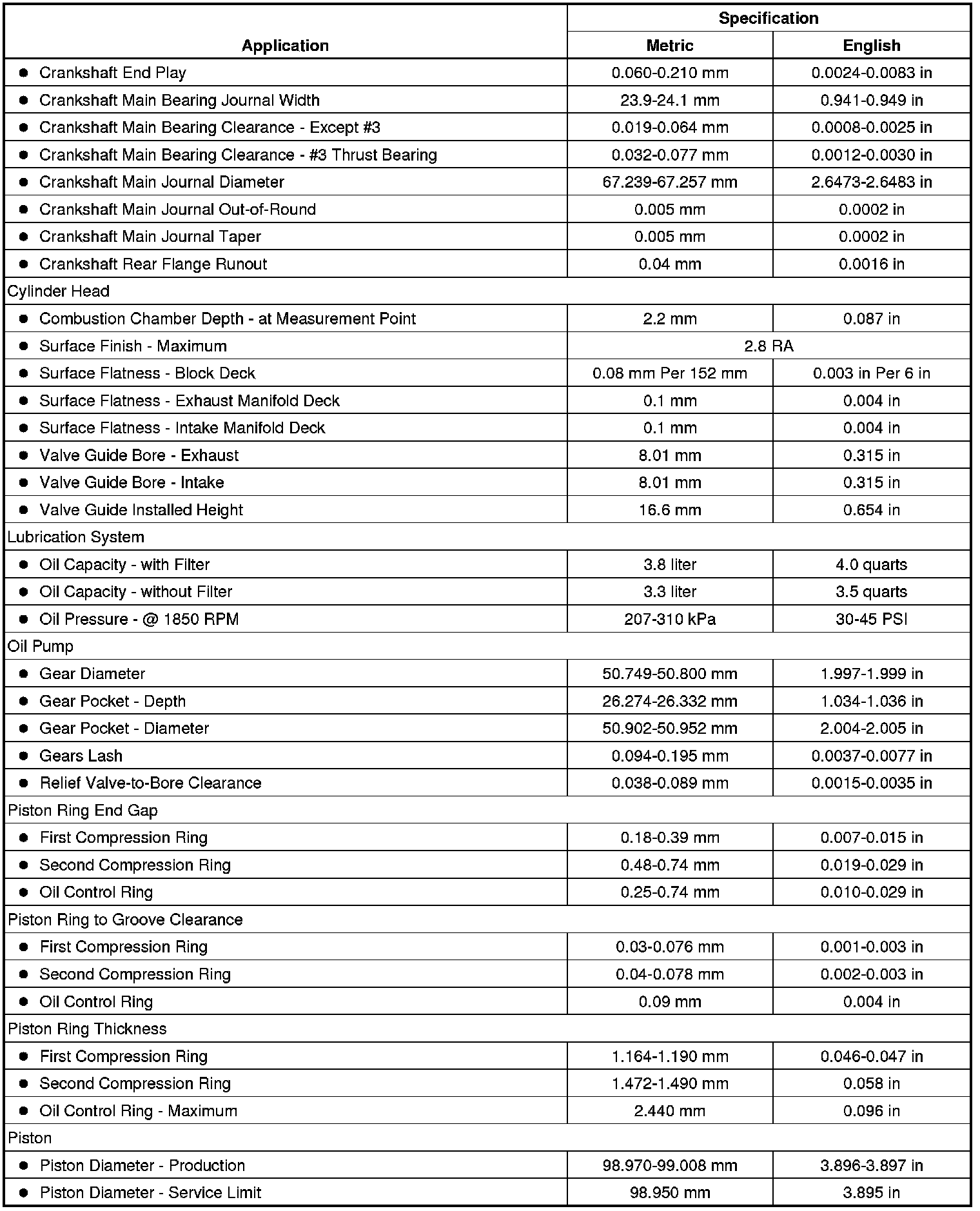 Engine Mechanical Specifications