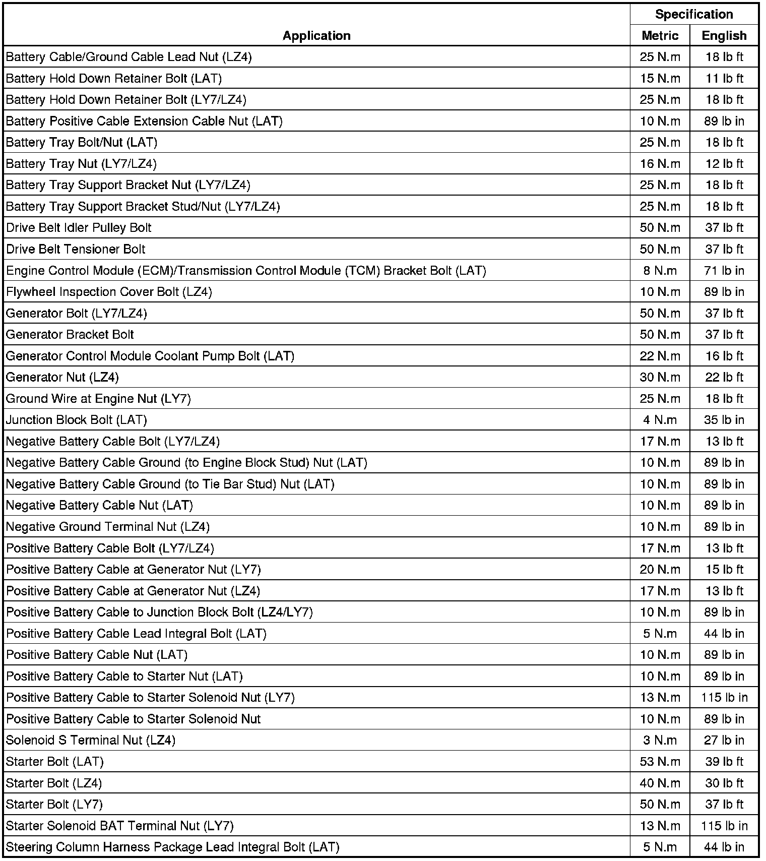 Fastener Tightening Specifications