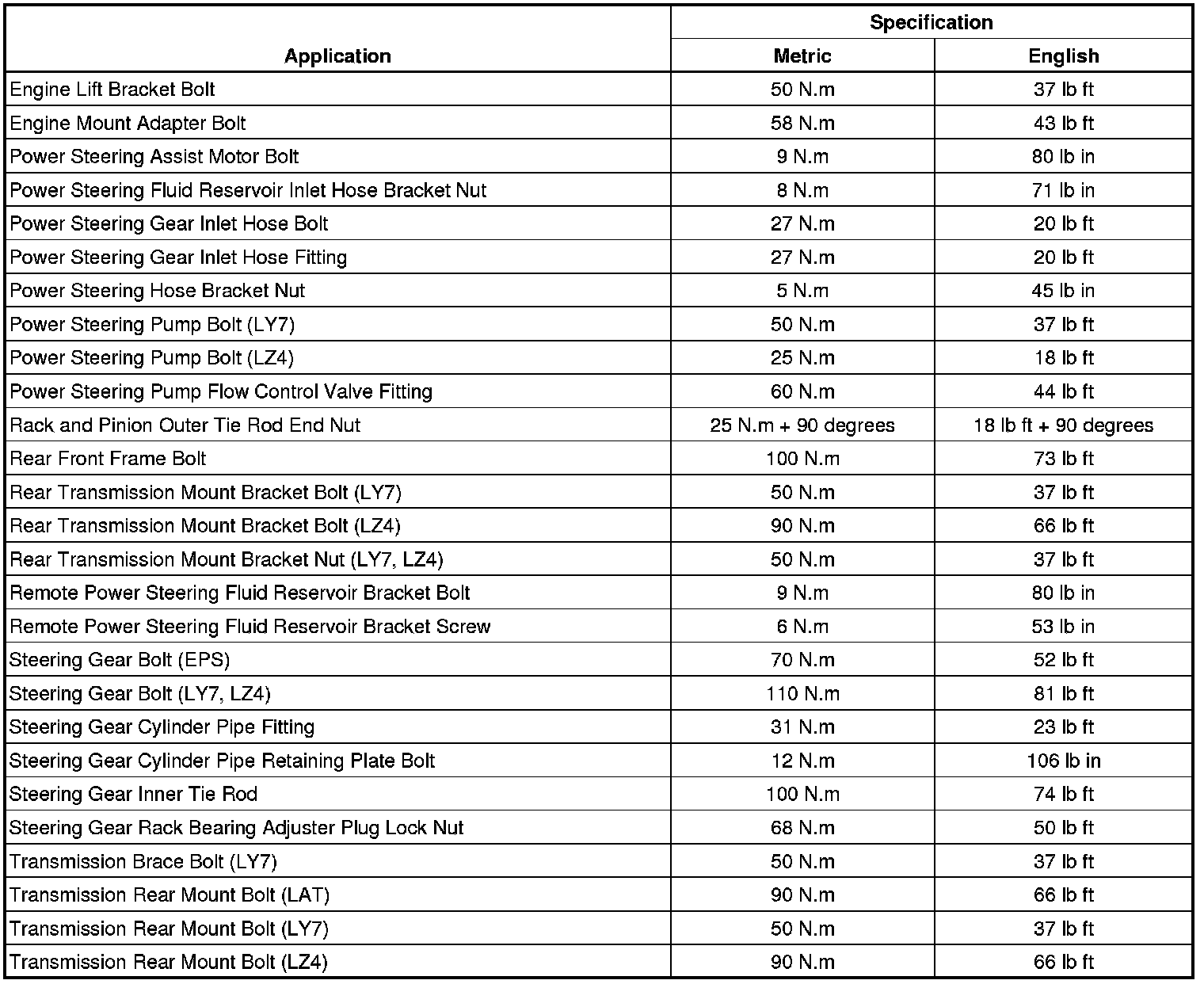 Fastener Tightening Specifications